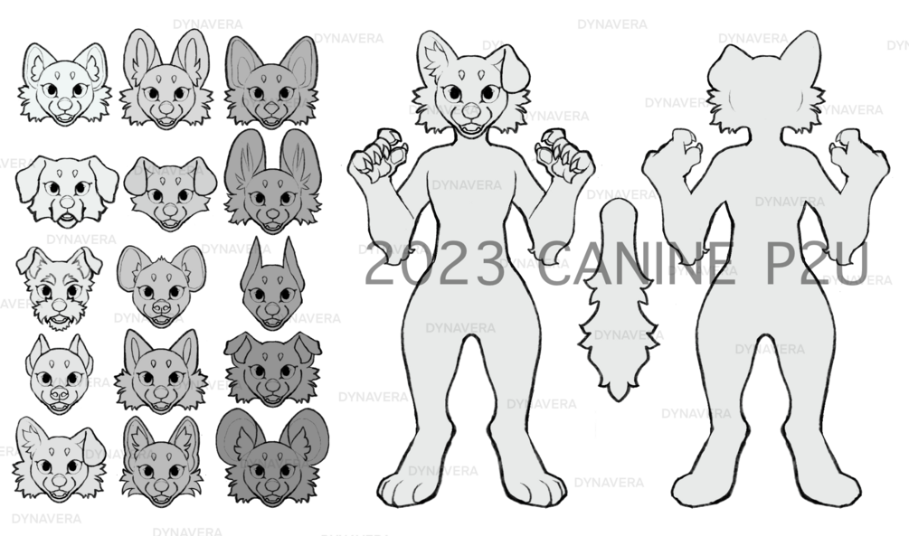 15 different types of canine species, 3 hair options, 3 expressions, and two body types!